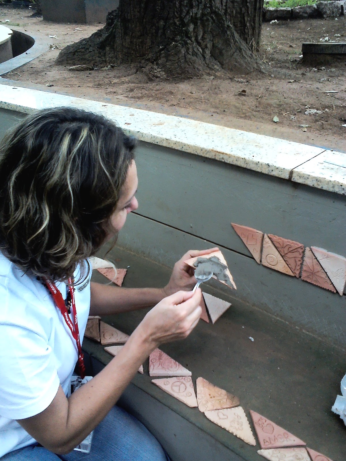 Além da linda horta, feita a muitas mãos, o painel com as plaquinhas de argila (da oficina que rolou lá em março!) também está pronto, pertinho dos canteiros, dando mais cara deste grupo de curumins que fizeram um super trabalho!!!!